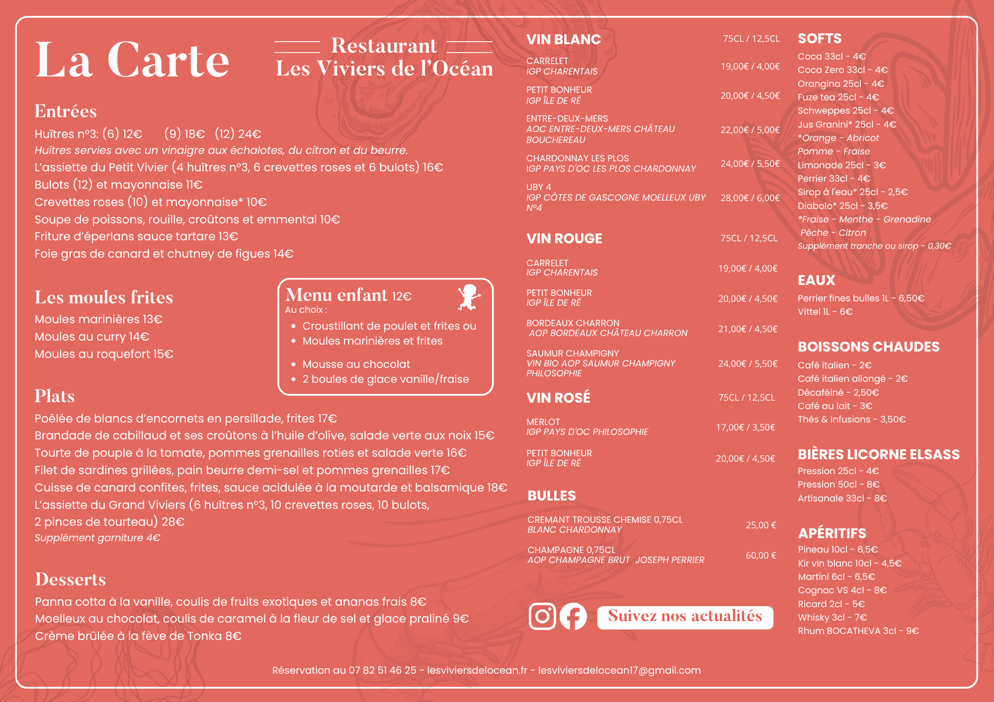 Absolument ! Les Viviers de L'Océan sont spécialisés dans les fruits de mer frais, y compris nos célèbres huîtres, moules et plateaux de fruits de mer. Une expérience gourmande incontournable.